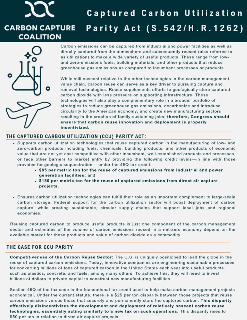 The Act proposes equalizing the Section 45Q tax credit rates, giving $85/ton for the reuse of CO₂ from industrial/power sources and $180/ton for direct air capture. It aims to boost carbon reuse technologies, especially where storage is costly or far from sources. By reducing policy barriers and increasing incentives, the Act seeks to help scale clean manufacturing, create high‑skilled jobs, and build a circular carbon economy. Read the full fact sheet to see detailed market potentials by 2050 and how this could reshape carbon reuse industries.