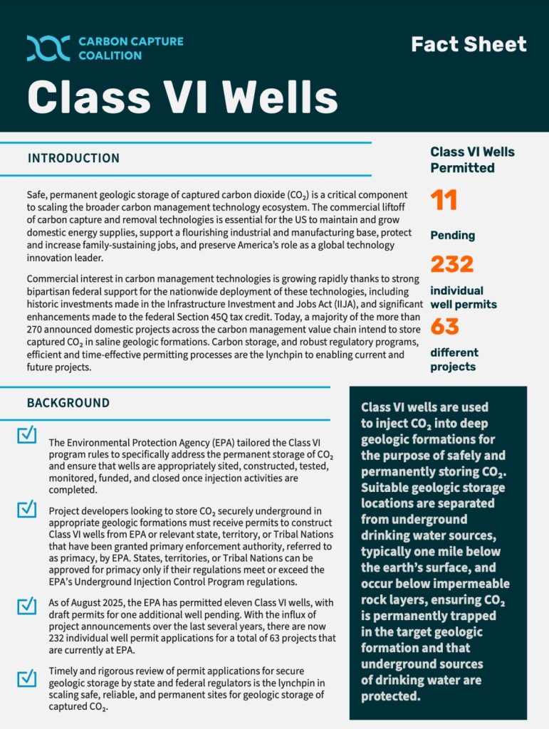 Class VI wells, which are regulated under EPA’s Underground Injection Control Program, are essential for safely injecting and permanently storing CO₂ in deep geologic formations, underpinning the scale up of carbon management nationwide. As of early 2025, only a few Class VI wells had been issued, and many more permit applications are pending, underscoring a growing need for efficient permitting and state responses. Ensuring a well‑resourced and responsive Class VI program is vital to unlocking investment and meeting climate goals. Read the full resource to learn more.