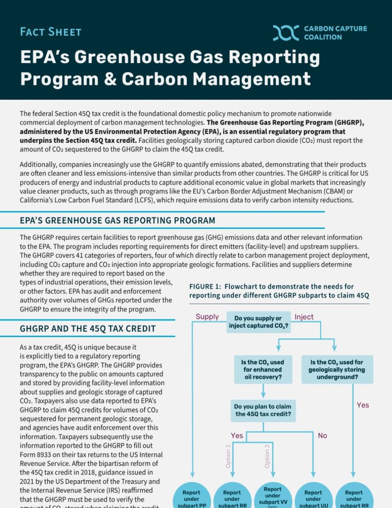The federal Section 45Q tax credit is the foundational domestic policy mechanism to promote nationwide commercial deployment of carbon management technologies. The Greenhouse Gas Reporting Program (GHGRP), administered by the US Environmental Protection Agency (EPA), is an essential regulatory program that underpins the Section 45Q tax credit. Facilities geologically storing captured carbon dioxide (CO2) must report the amount of CO2 sequestered to the GHGRP to claim the 45Q tax credit.